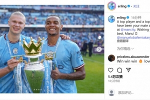 哈兰德写道:“一位顶级球员,也是顶级的好兄弟!很自豪曾在多特蒙德和曼城与你并肩作战。祝你一切顺利,Manu!”