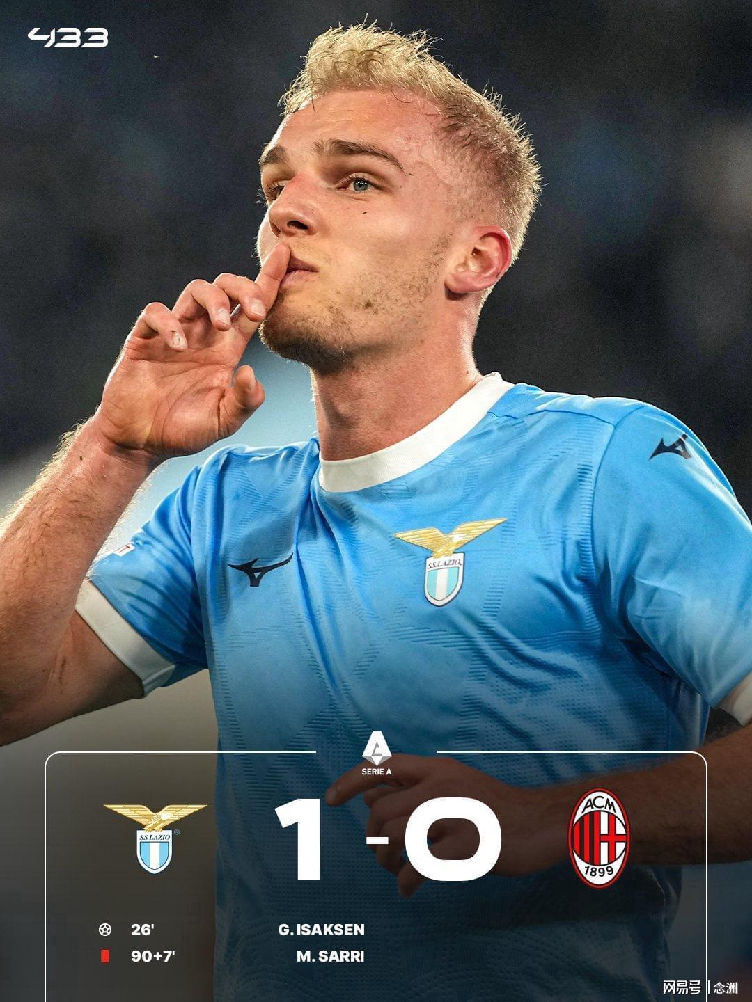 意甲第29轮,AC米兰客场0-1不敌拉齐奥,无缘三连胜,距榜首8分排名第二。伊萨克森、泰勒先后中横梁,马鲁西奇助攻伊萨克森破门,丹尼尔-马尔蒂尼错失良机,埃斯图皮尼安险些乌龙;阿特卡梅进球被吹,萨里读秒抗议补时时长吃到红牌。
