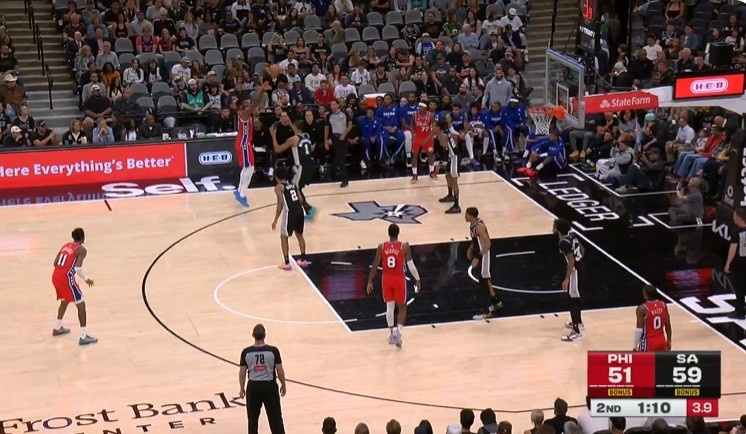mk体育官网-跟前队友学的?恩比德面对文班 双后撤步从罚球线撤出三分线命中